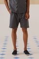 Amber Bloom - Men’s Cotton-Linen tailored shorts in Warm Sand with Amber Floral Embroidery.