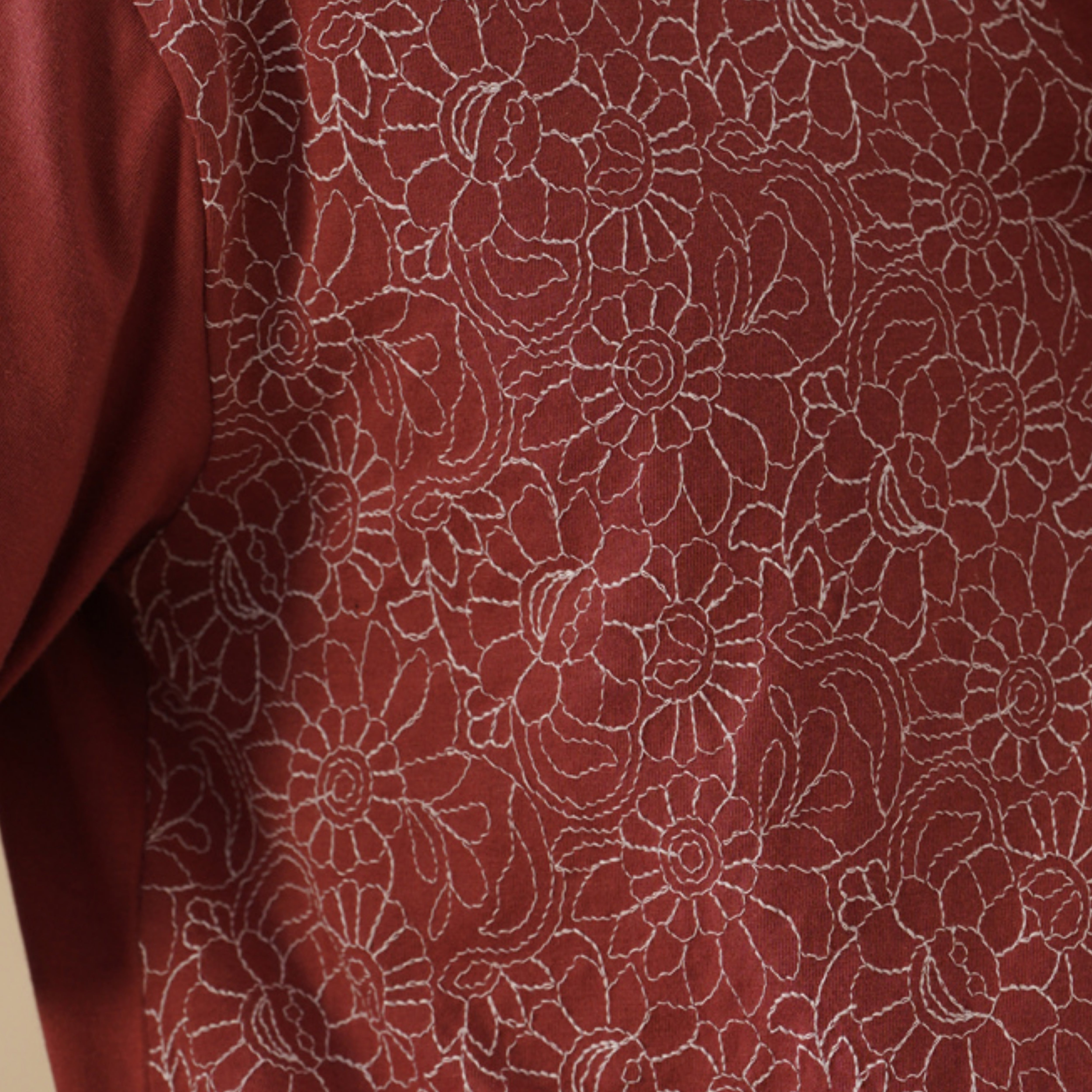 Turn the garment inside out before washing/ironing; avoid direct heat on embroidery.
