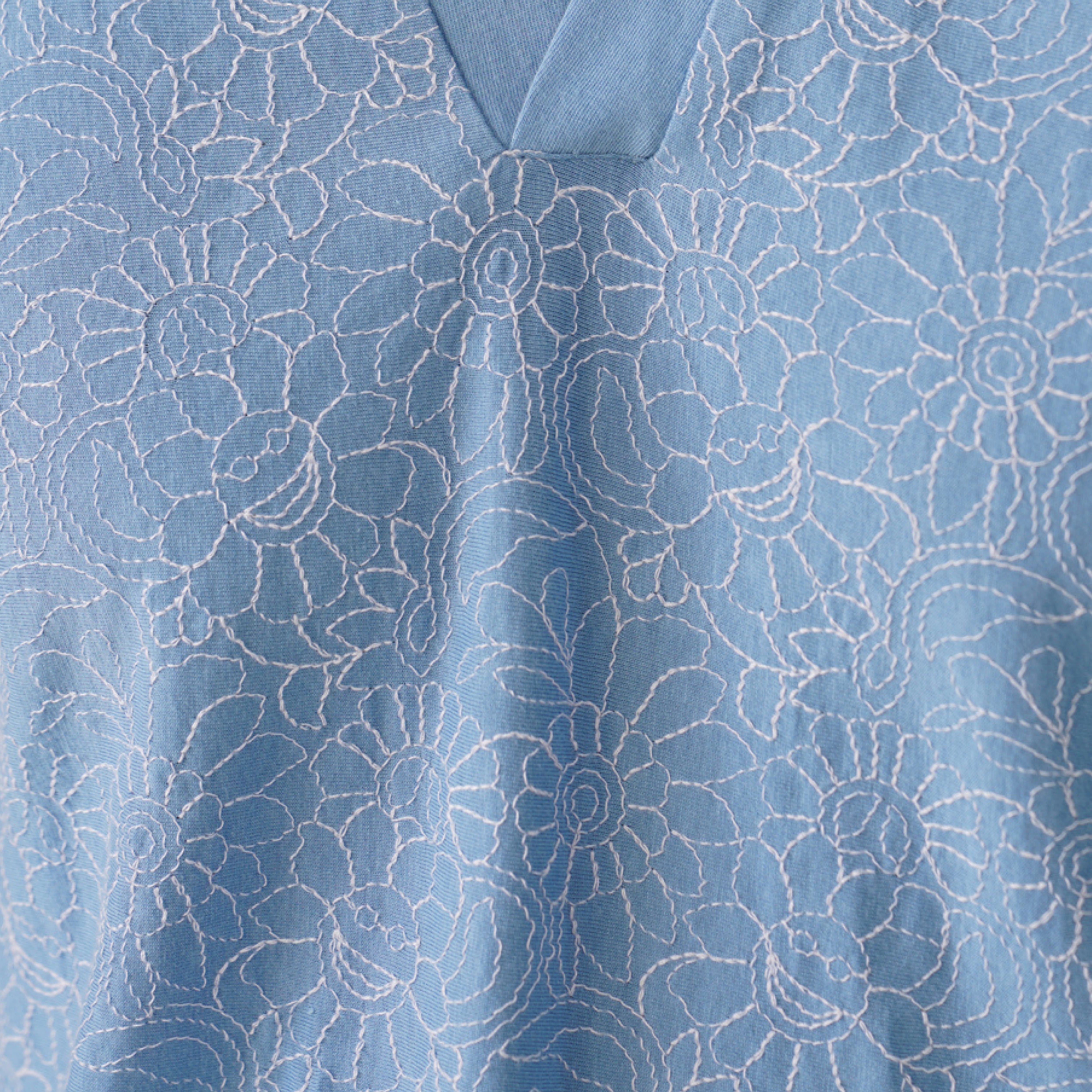 Love the embroidery? Explore its woven, button-up twin — Azure Blooms — for a sharper yet equally breezy vibe.