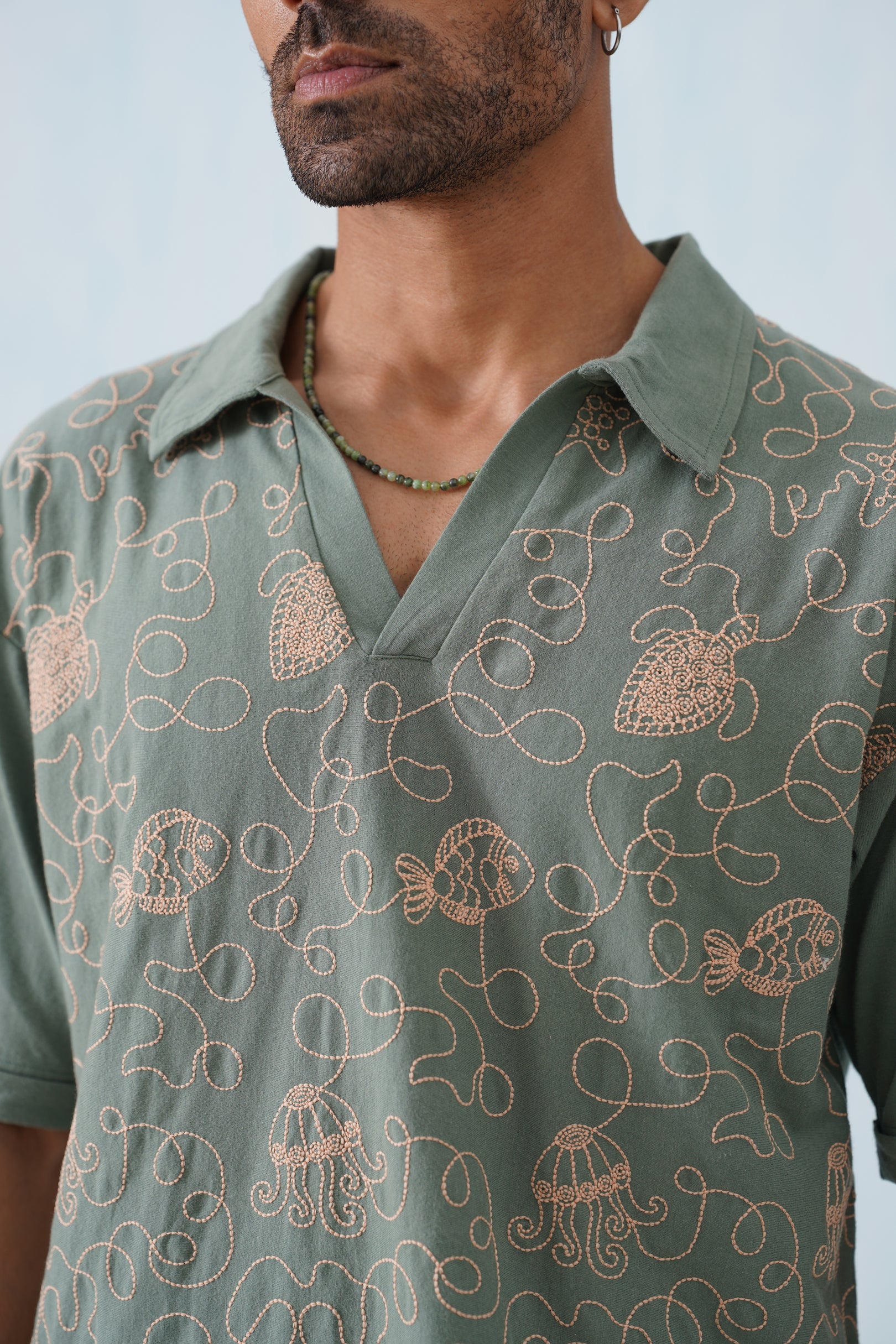 Dive into laid-back luxury with the Reef Rider coord set. Crafted from 100% Cotton knit, it’s breathable yet structured, making it perfect for sun-soaked days and breezy evenings. The all-over marine life embroidery celebrates ocean wanderlust, while the relaxed T-shirt and matching shorts keep comfort front and centre.