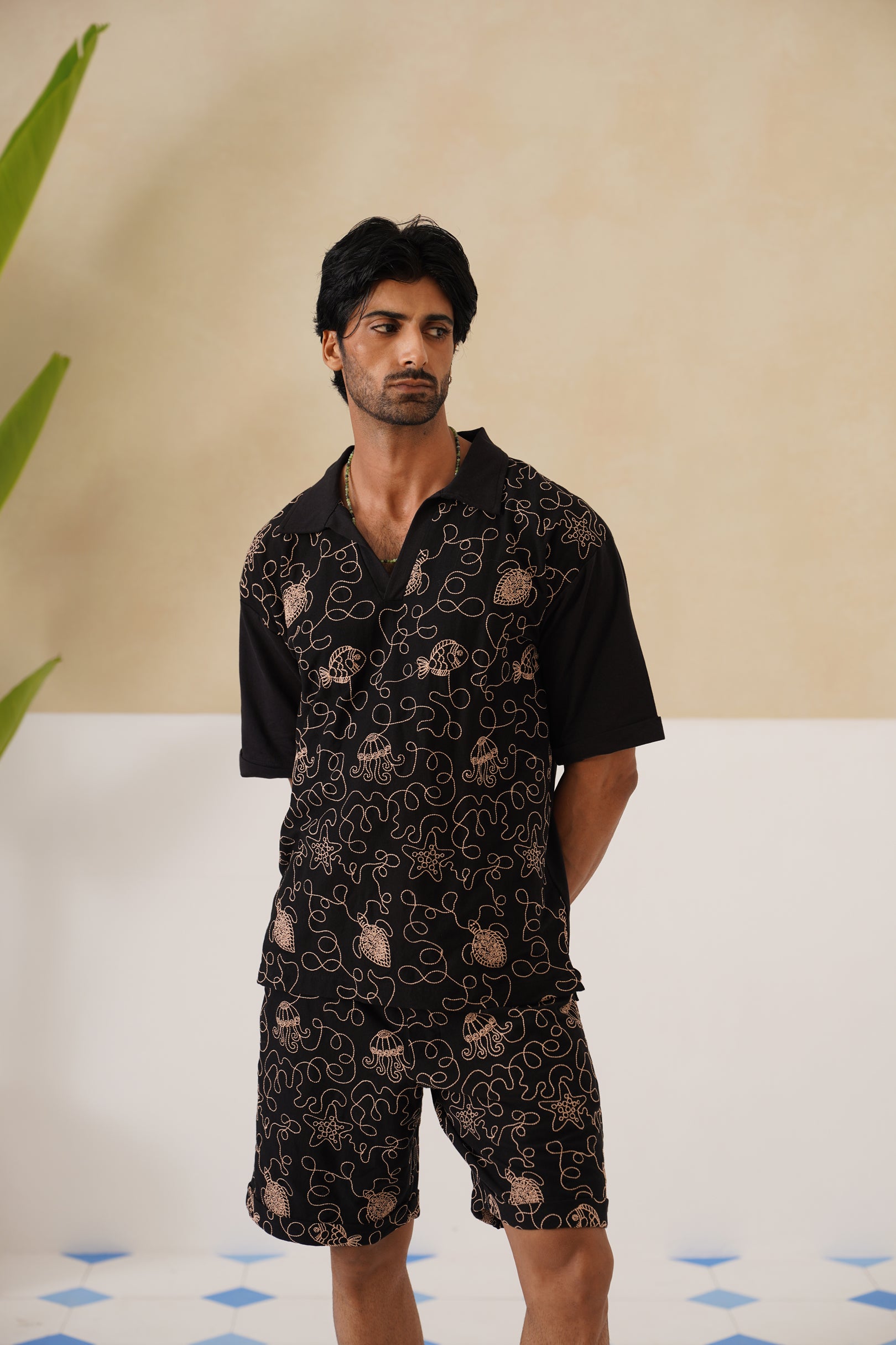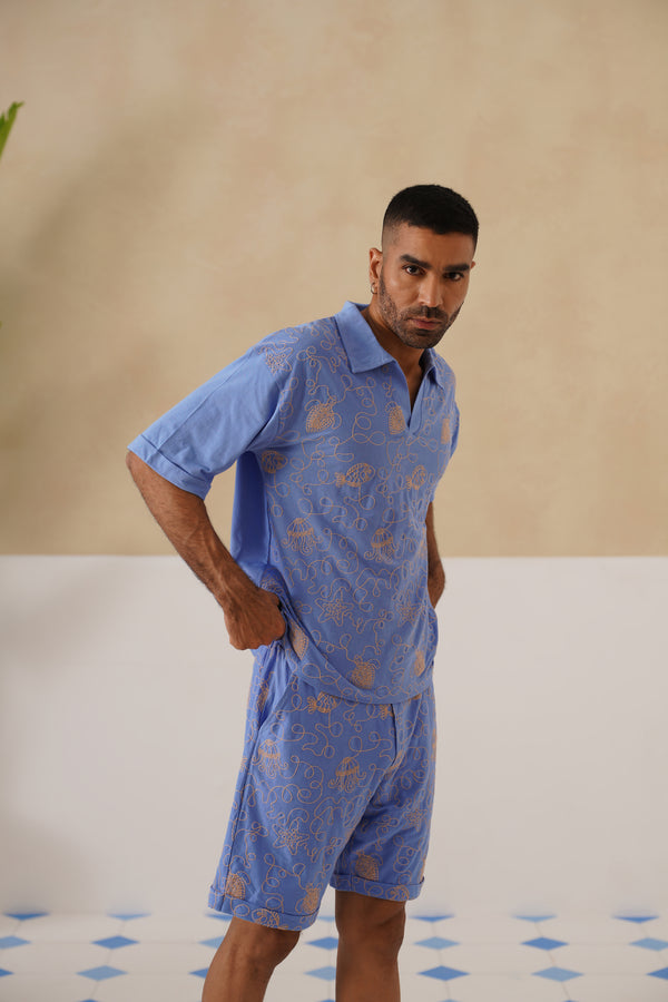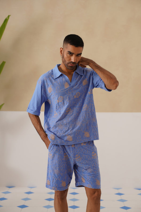 Dive into laid-back luxury with the Reef Rider coord set. Crafted from 100% Cotton knit, it’s breathable yet structured, making it perfect for sun-soaked days and breezy evenings. The all-over marine life embroidery celebrates ocean wanderlust, while the relaxed T-shirt and matching shorts keep comfort front and centre.