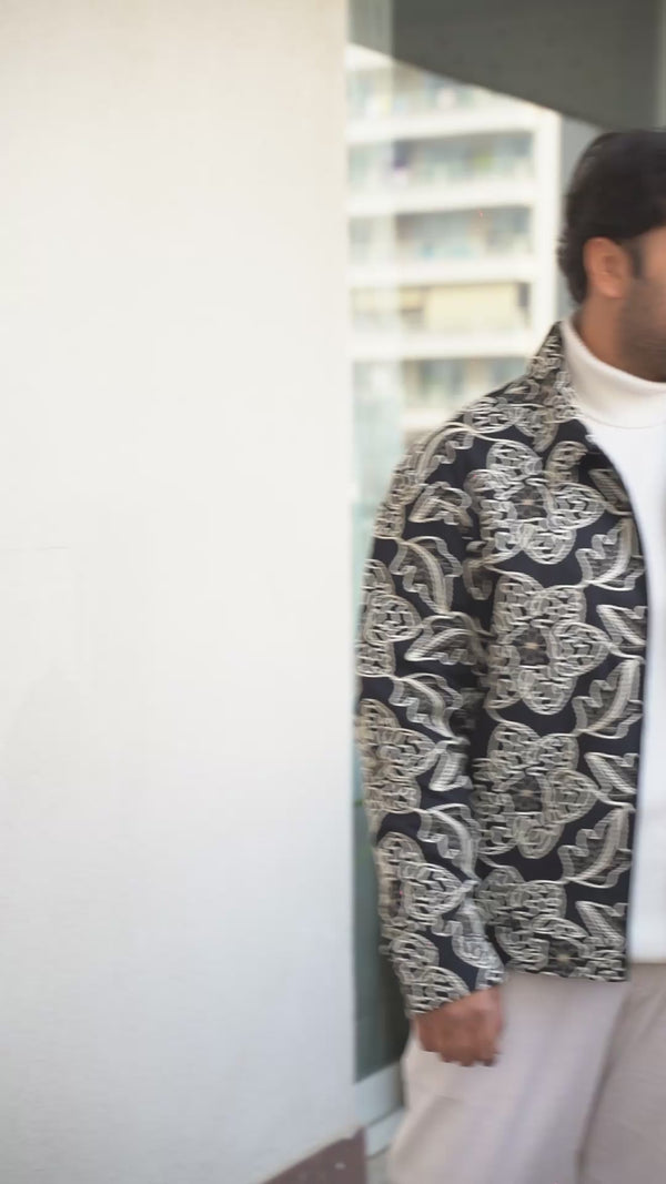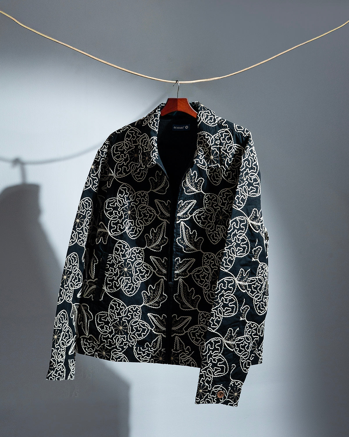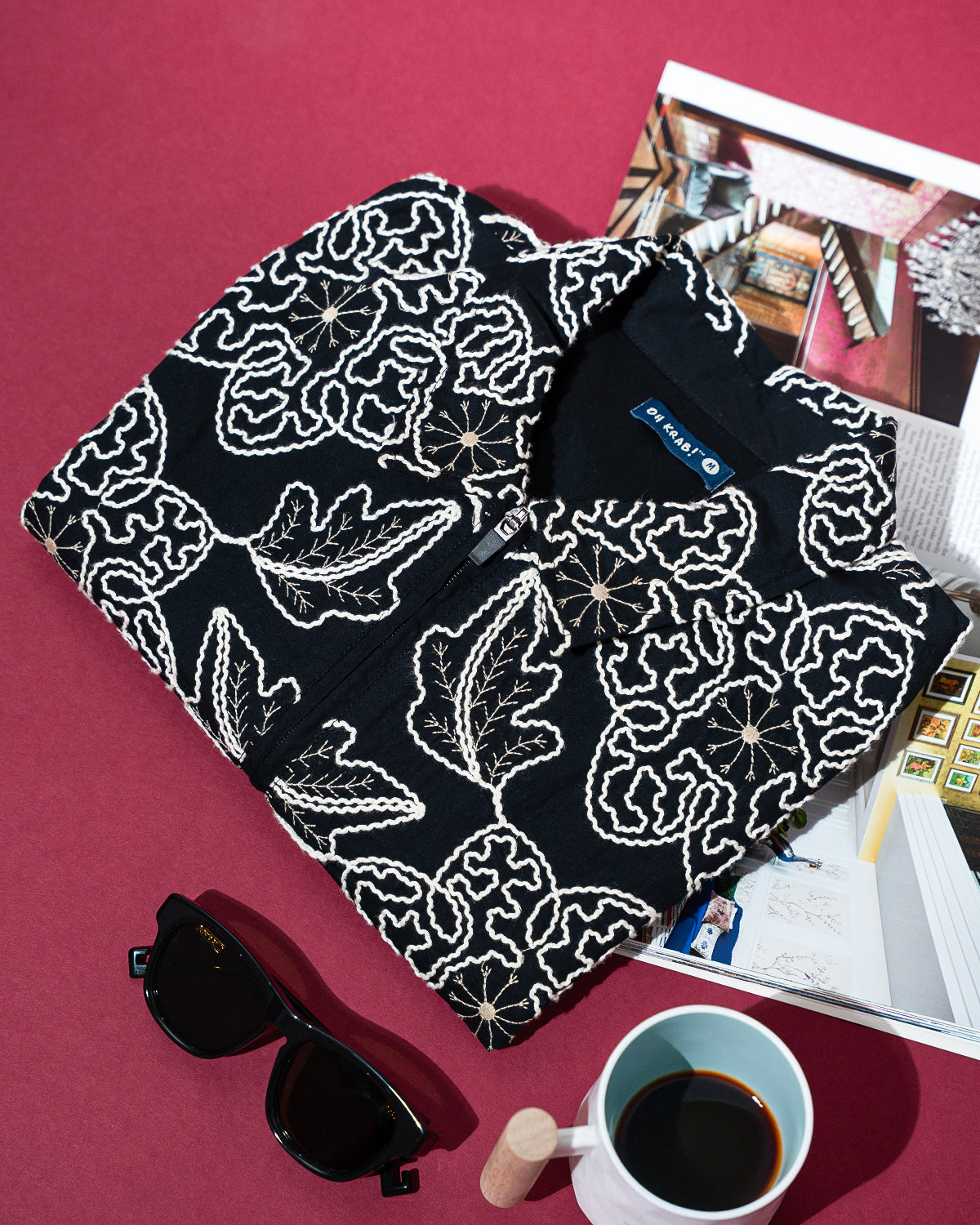 The WINTER FERN SHACKET is your go-to winter layer when you want warmth without losing edge. Cut in black 100% Cotton fabric, it’s covered in intricate cording embroidery that traces bold floral and leaf motifs all over. The zip-front closure and shirt collar keep it clean and minimal, while the embroidery does all the talking. Wear it over a basic tee or knit with denims, cargos, or tailored trousers whenever you want winter to feel a little more fun.